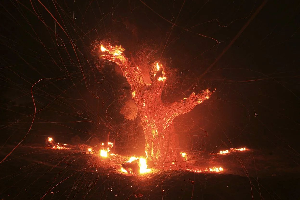 A spark flew out. The dry leaves caught it. Fire. Again.