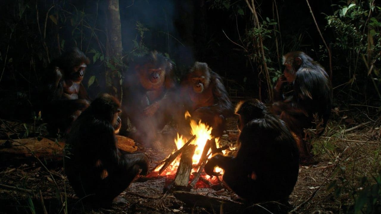 This is where language was conceived. Apes circling a fire at night.